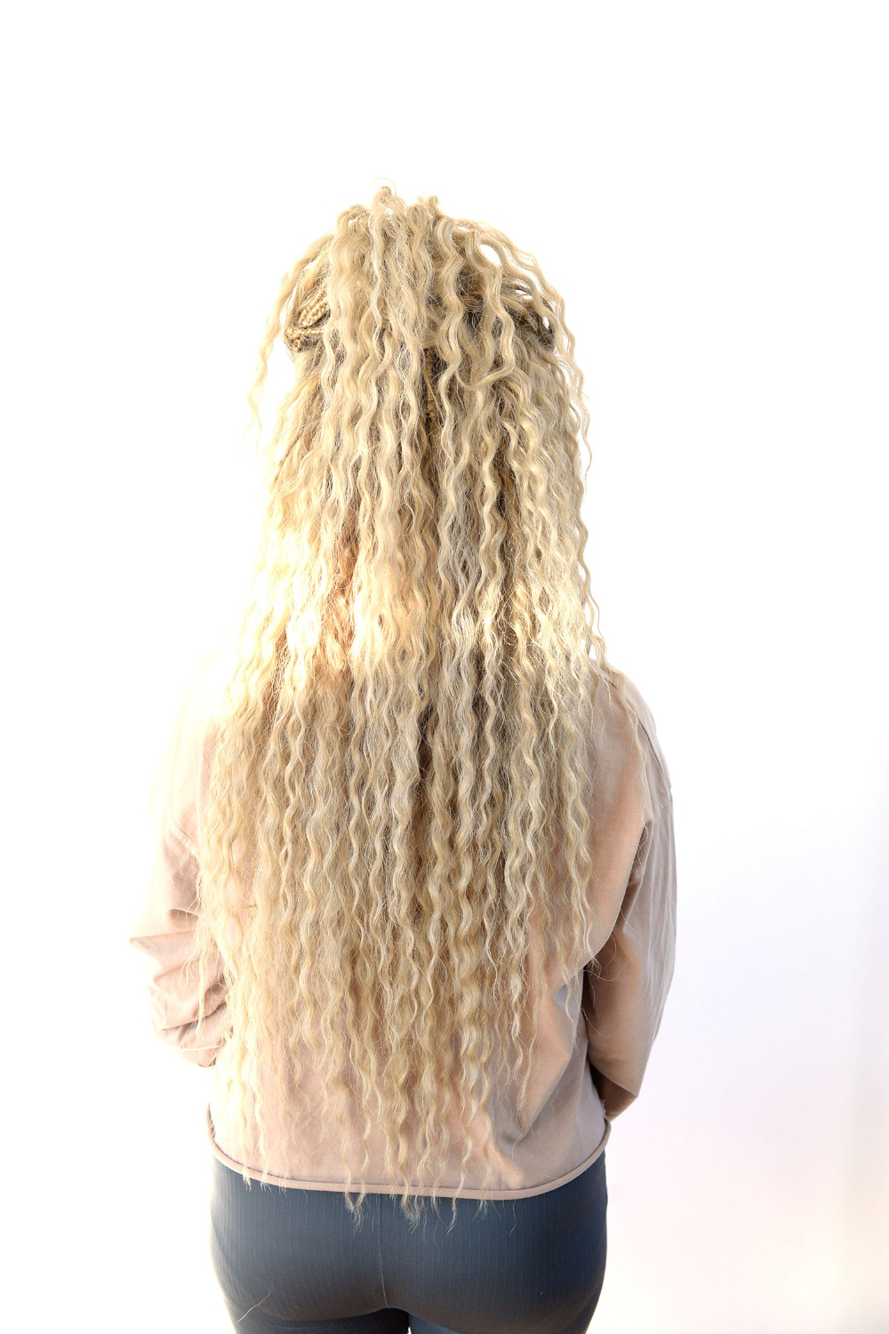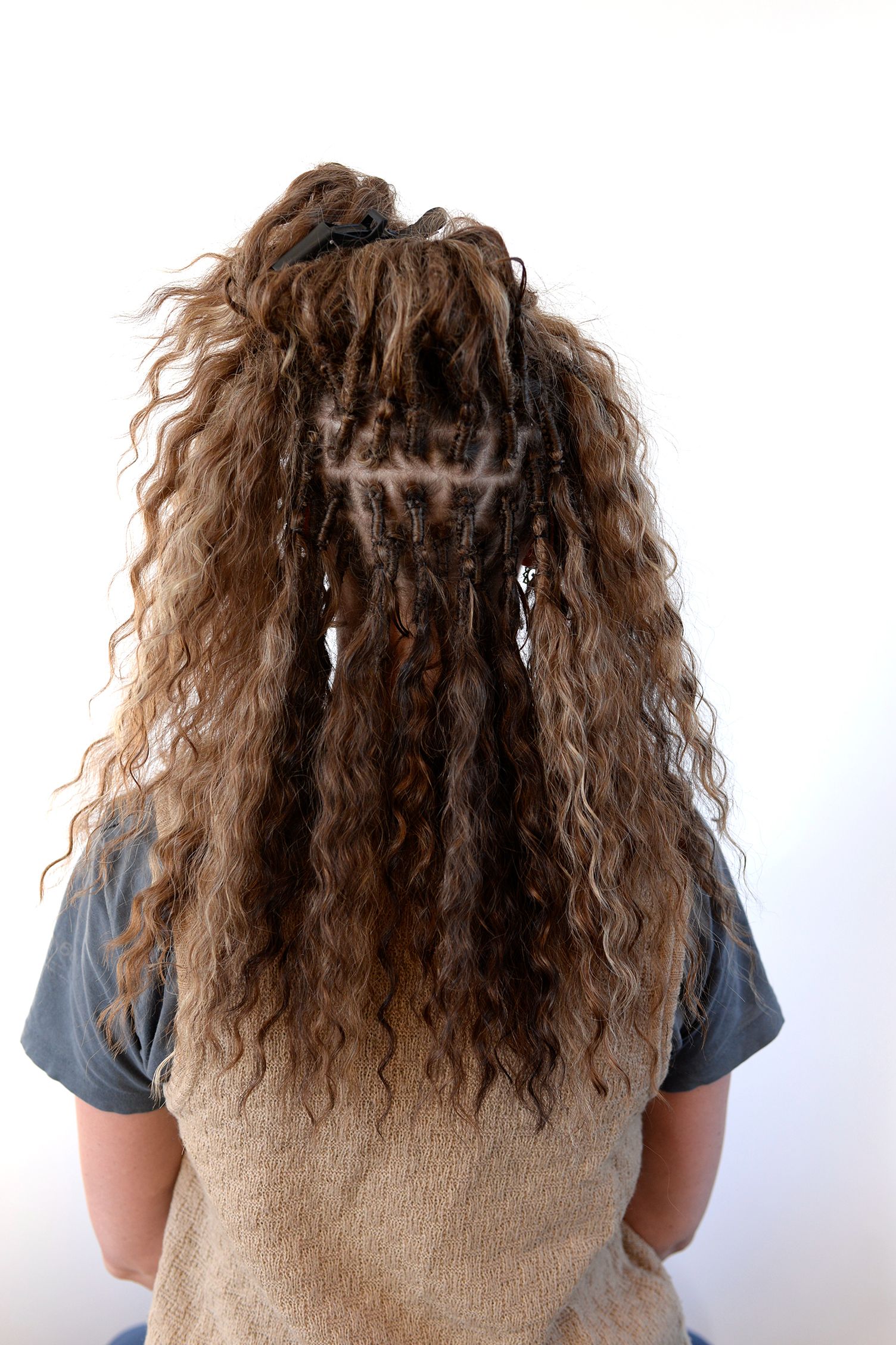 Syntet-håret tuperas sedan upp och formas till en dreadlock med hjälp av min ”steamer” som producerar varmvatten-ånga.