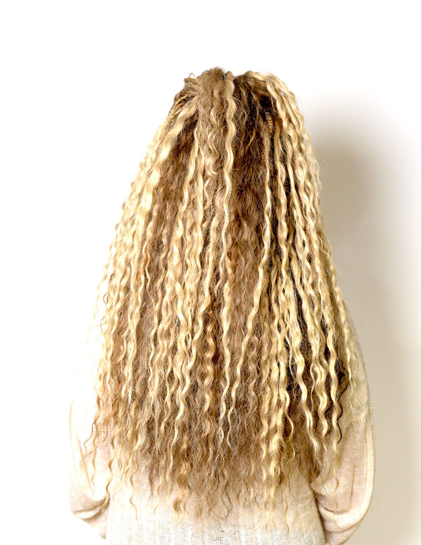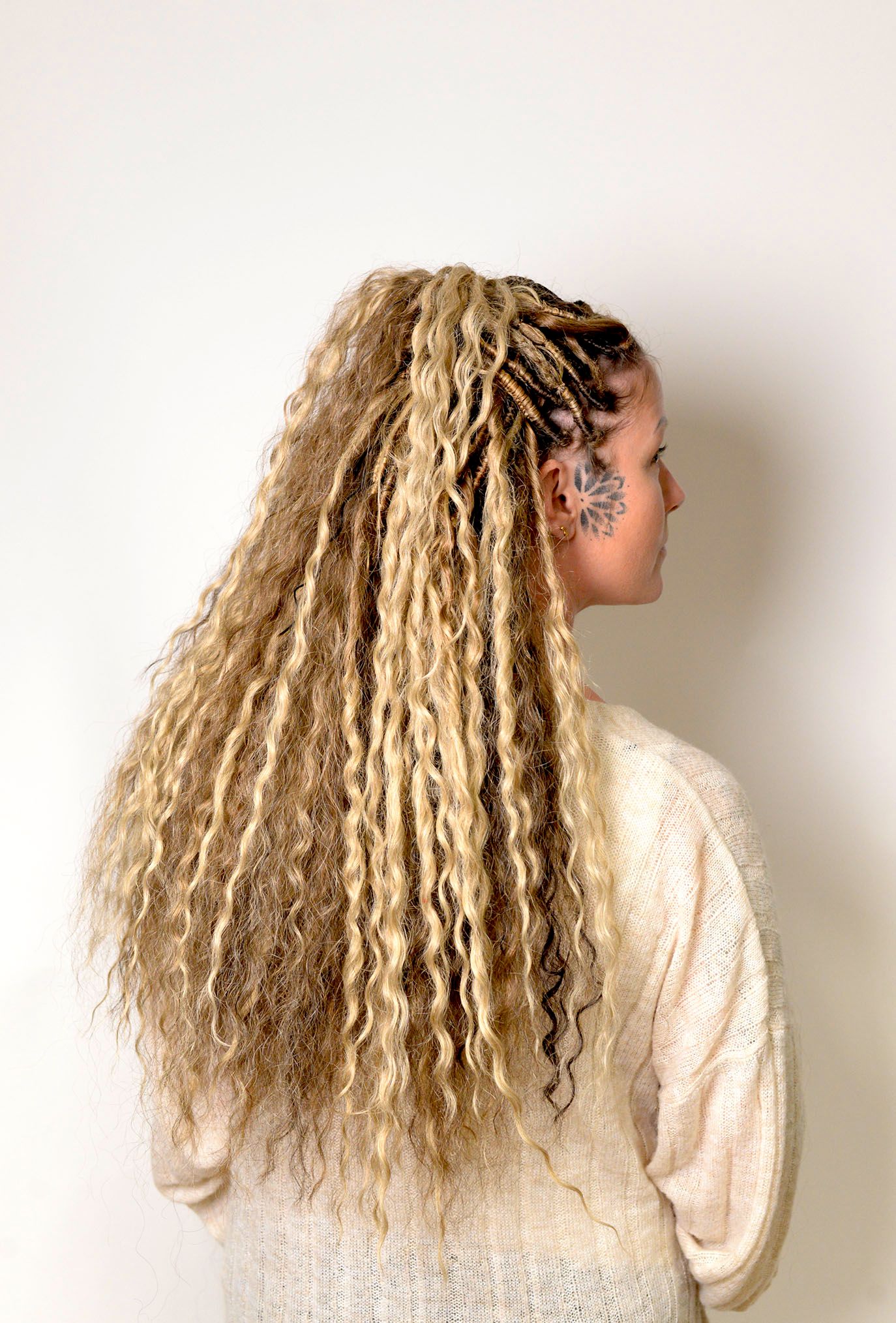 Jag gör både pre made dreadlocks som single ended dreads och double ended dreadlocks som man kan fläta in med olika metoder, du kan välja, vilken typ av textur dreadsen ska ha och vilka färger och hur du vill att slutet ska vara på dreadsen som text dreadlocks med lösa toppar som även kallas för Mermaid dreadlocks.