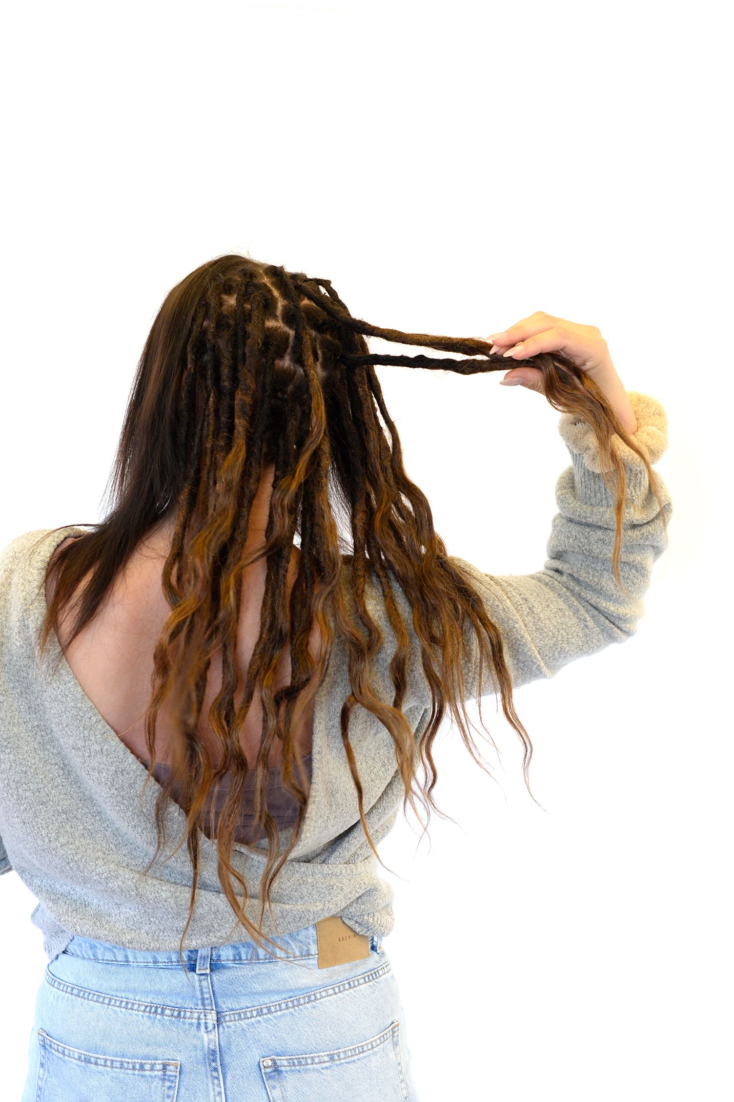 Jag tar fram äkta löshår som matchar dina dreadlocks och jag blandar till olika färg-nyanser som kommer passa ditt egna hår.