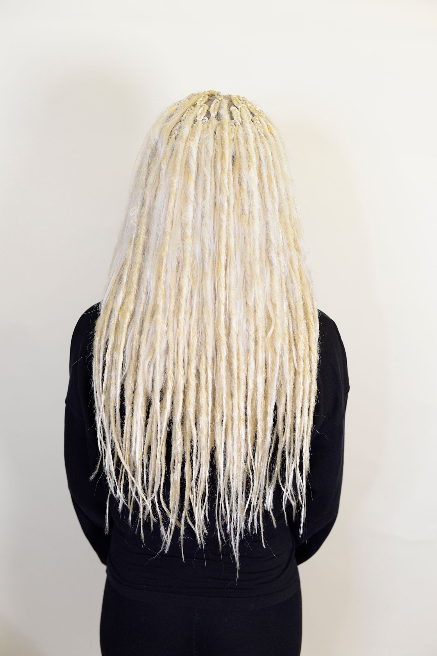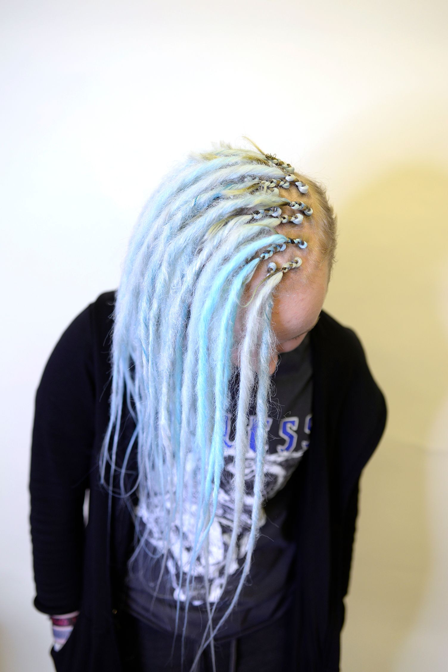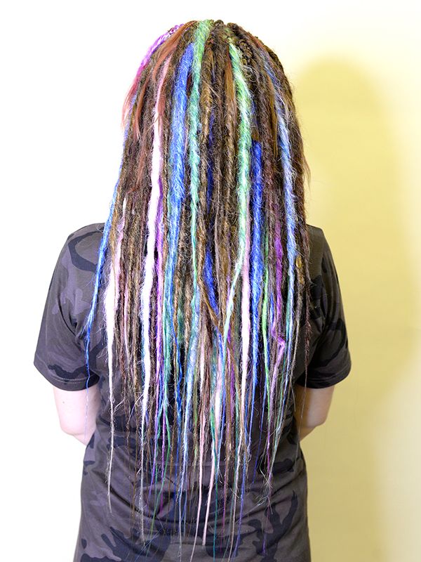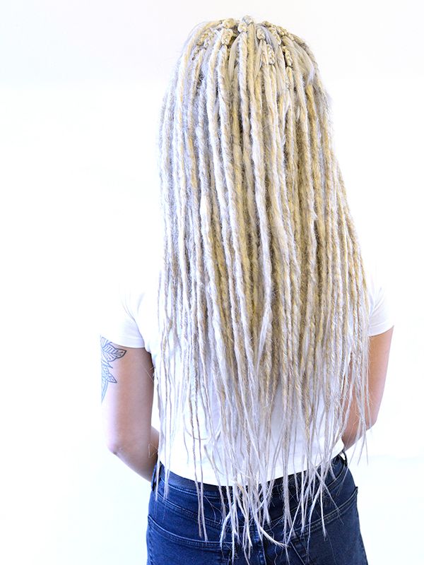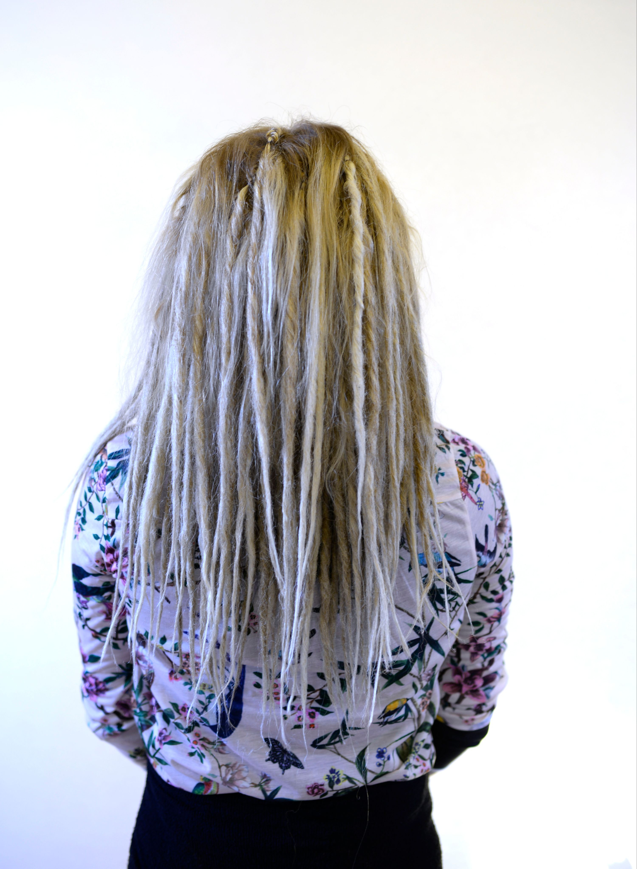 Jag gör bĂ„de pre made dreadlocks som single ended dreads och double ended dreadlocks som man kan flĂ€ta in med olika metoder, du kan vĂ€lja, vilken typ av textur dreadsen ska ha och vilka fĂ€rger och hur du vill att slutet ska vara pĂ„ dreadsen som text dreadlocks med lösa toppar som Ă€ven kallas för Mermaid dreadlocks.Â