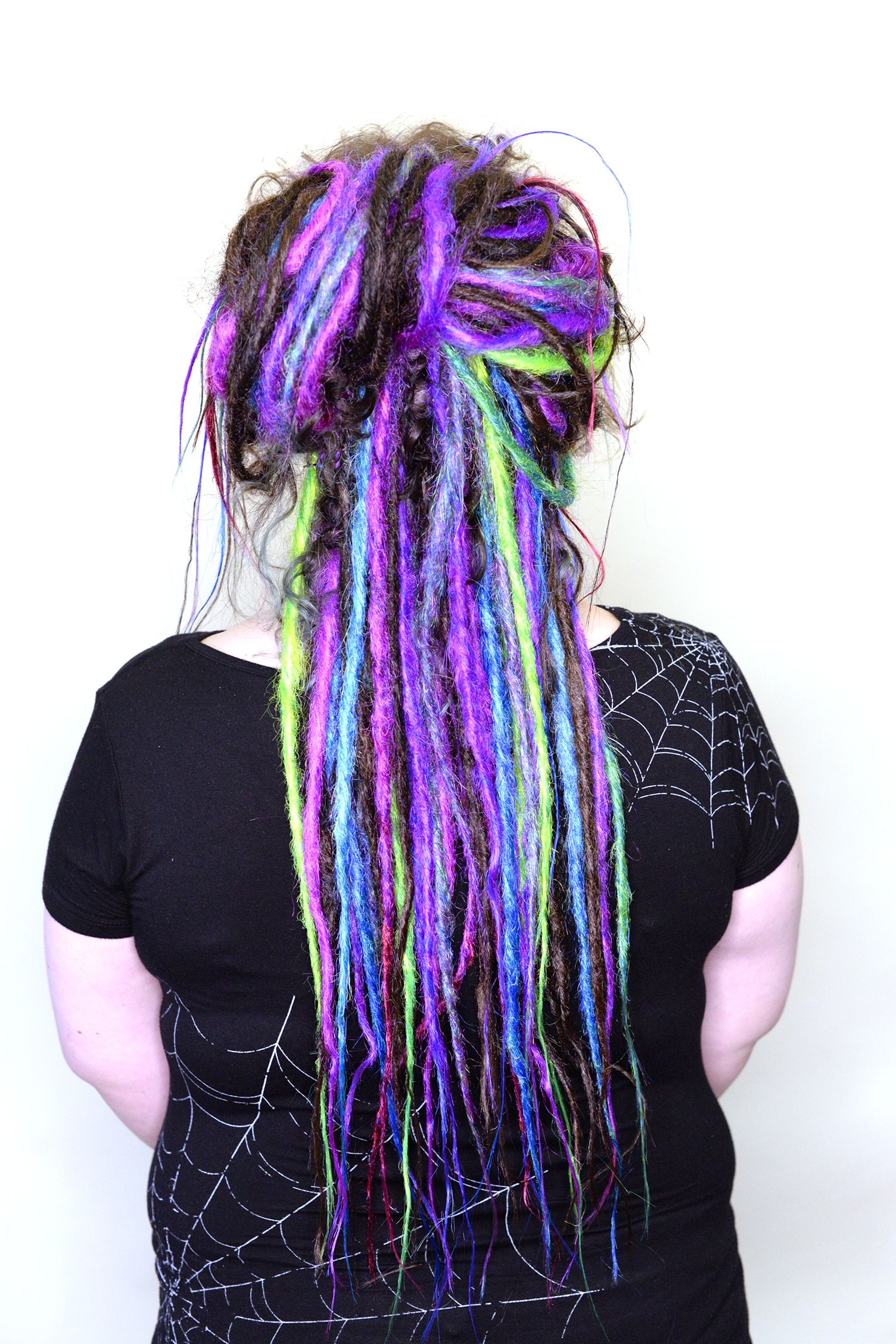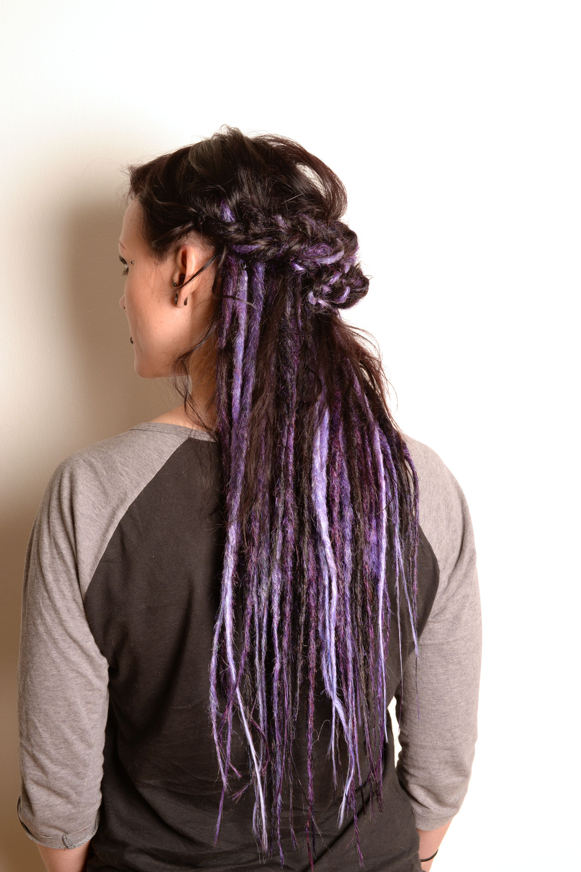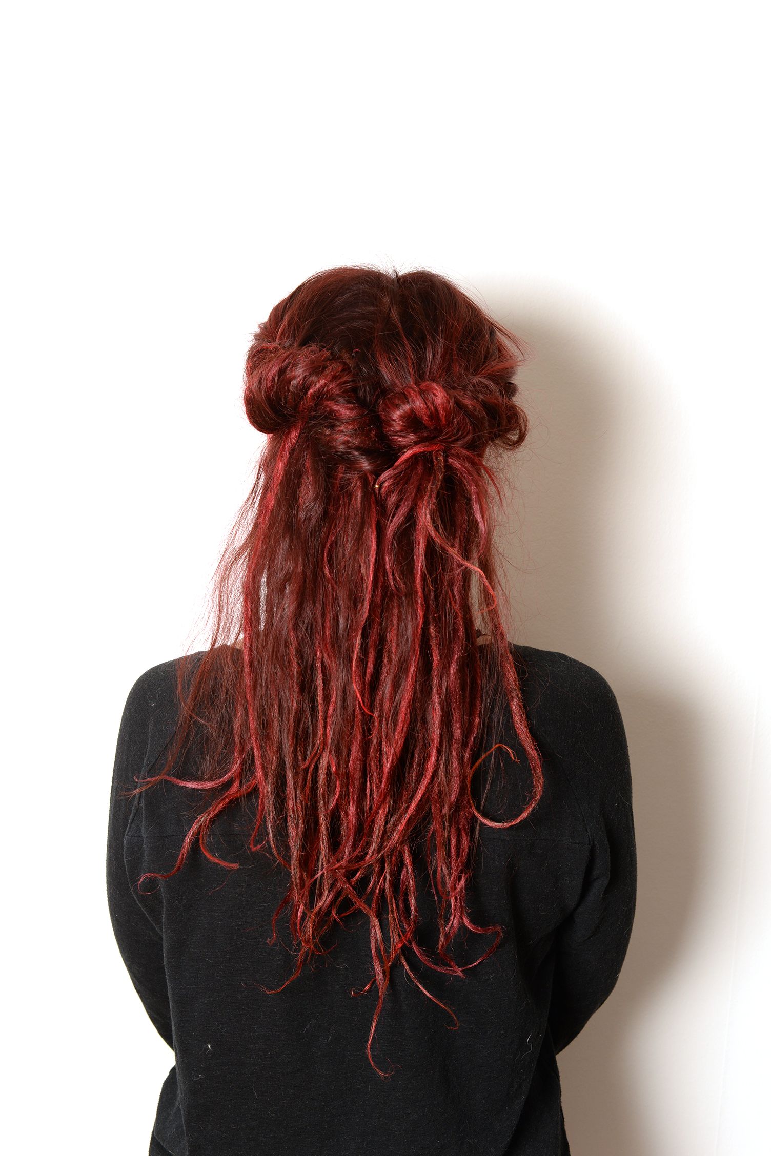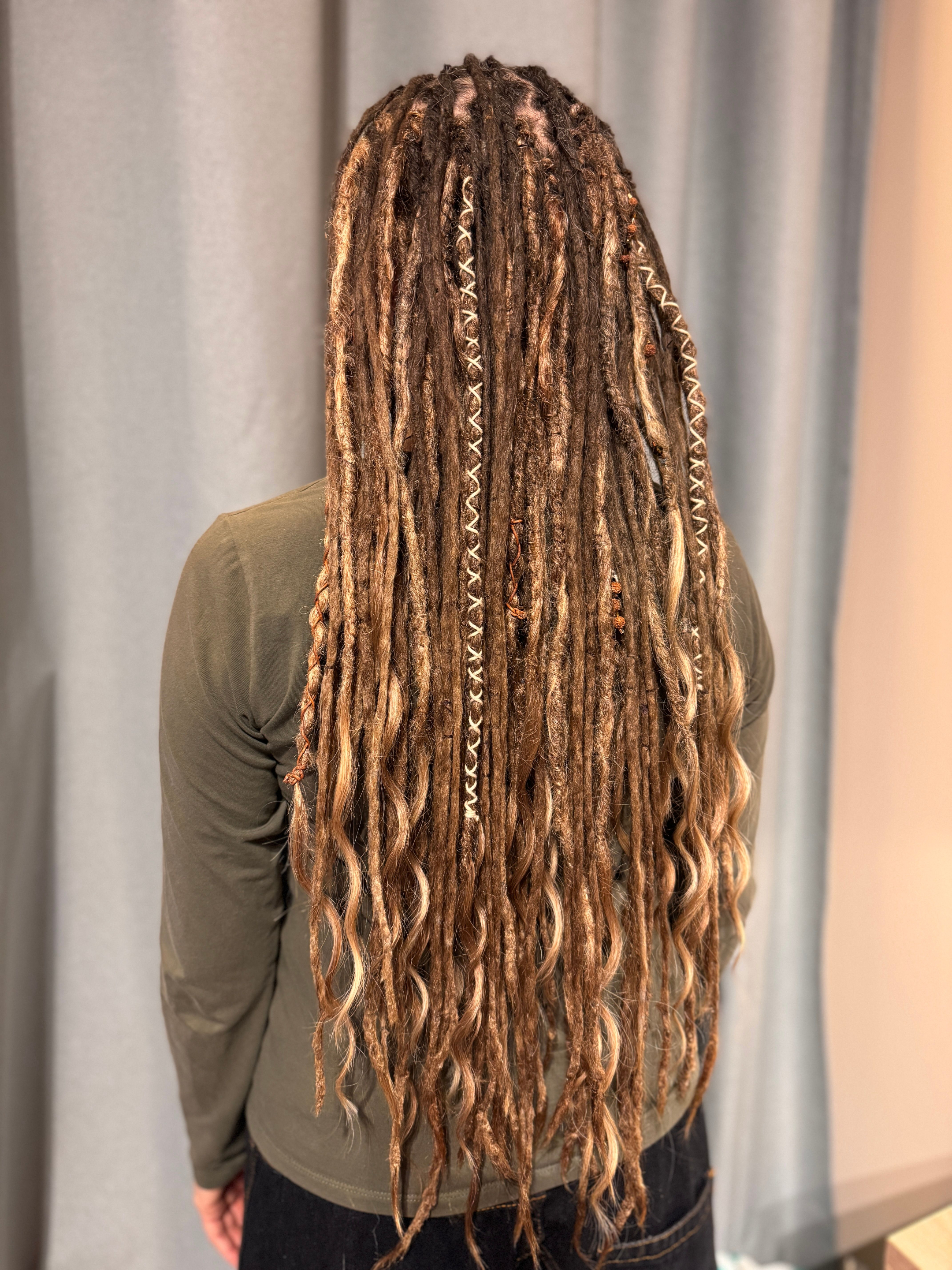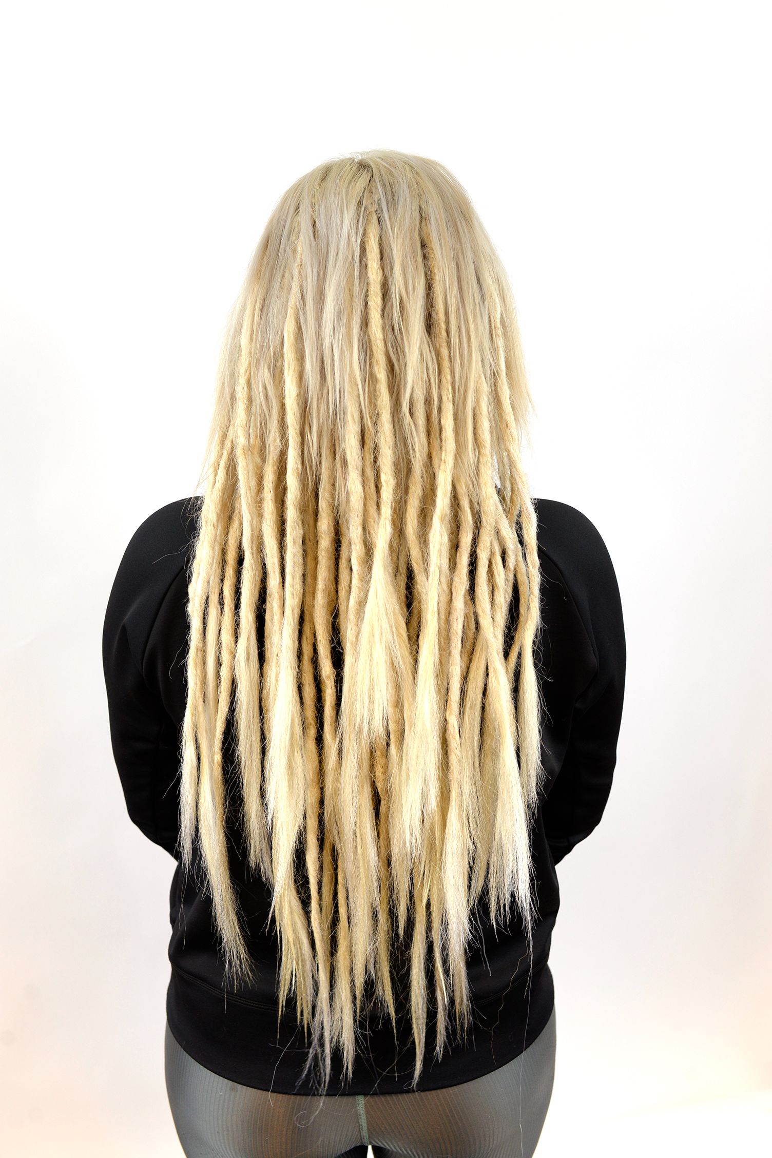 Jag gör bĂ„de pre made dreadlocks som single ended dreads och double ended dreadlocks som man kan flĂ€ta in med olika metoder, du kan vĂ€lja, vilken typ av textur dreadsen ska ha och vilka fĂ€rger och hur du vill att slutet ska vara pĂ„ dreadsen som text dreadlocks med lösa toppar som Ă€ven kallas för Mermaid dreadlocks.Â