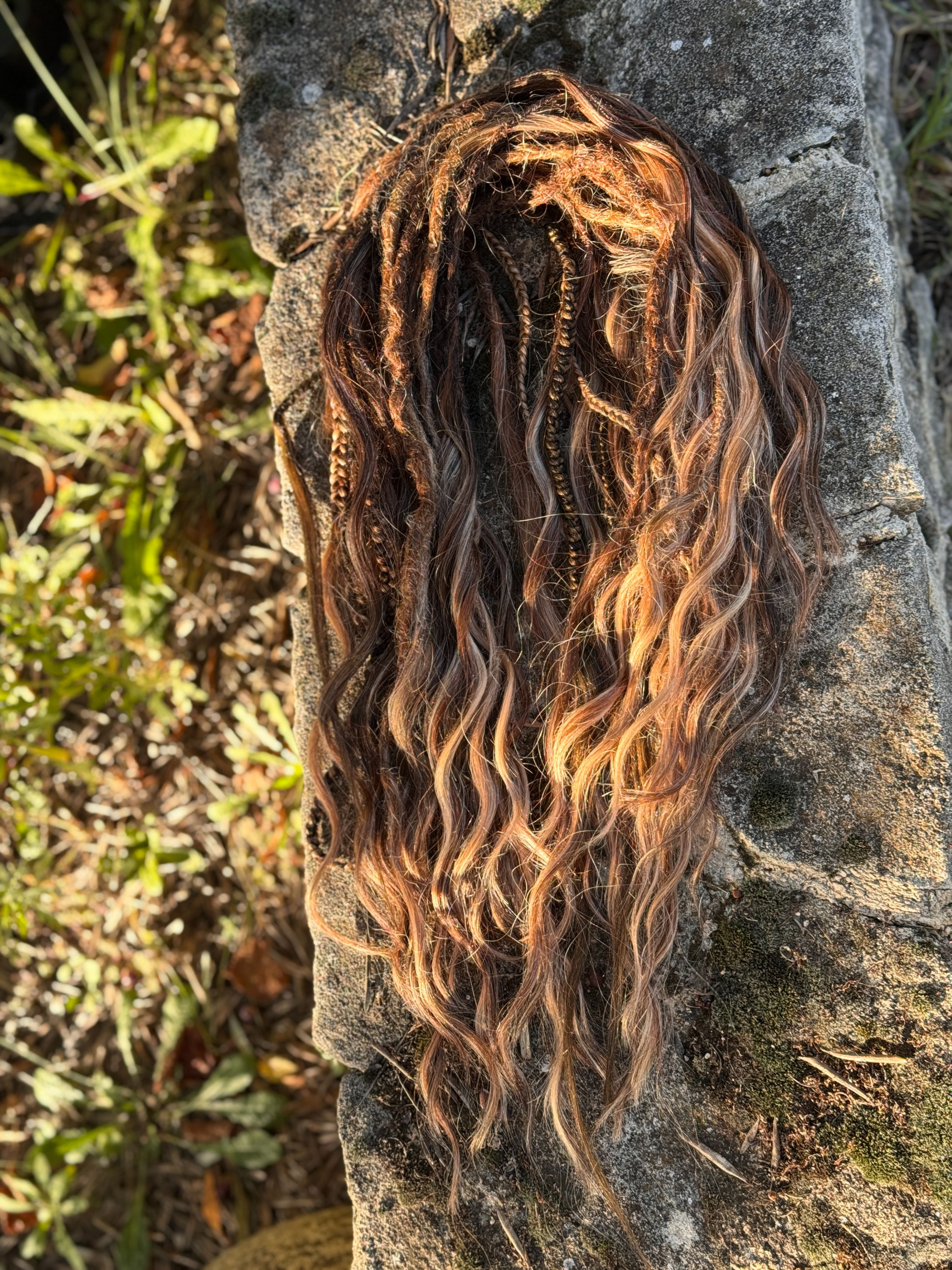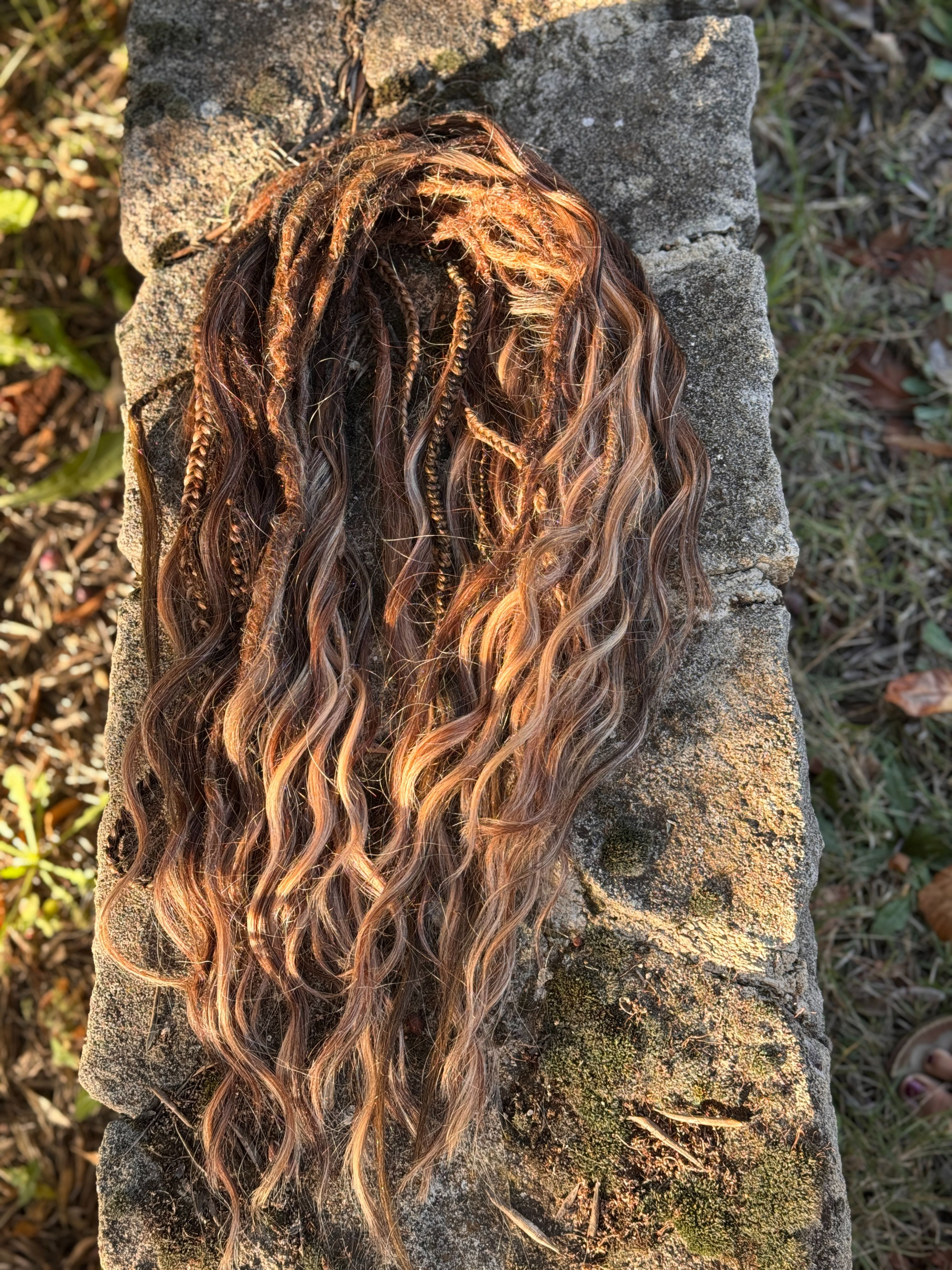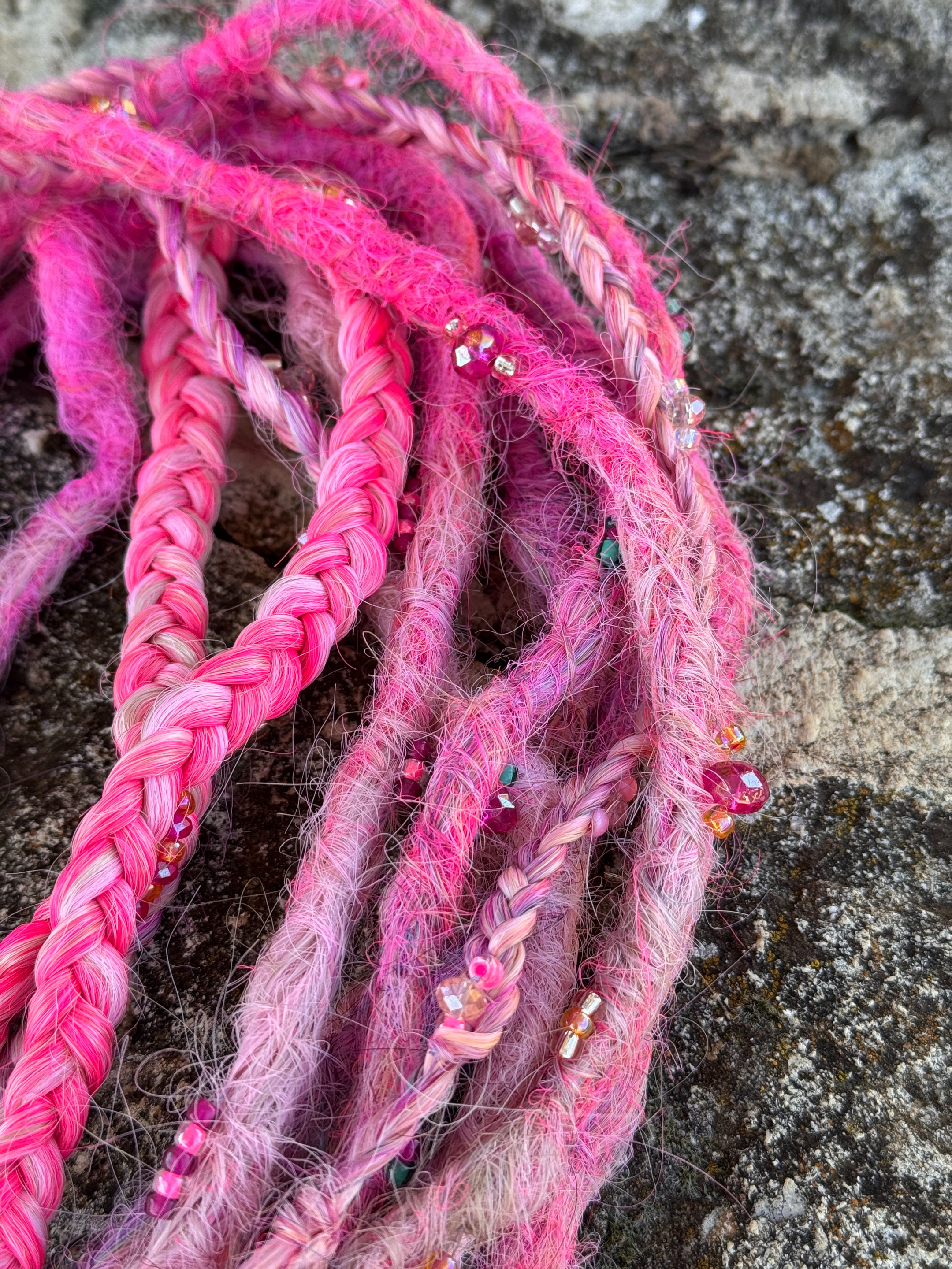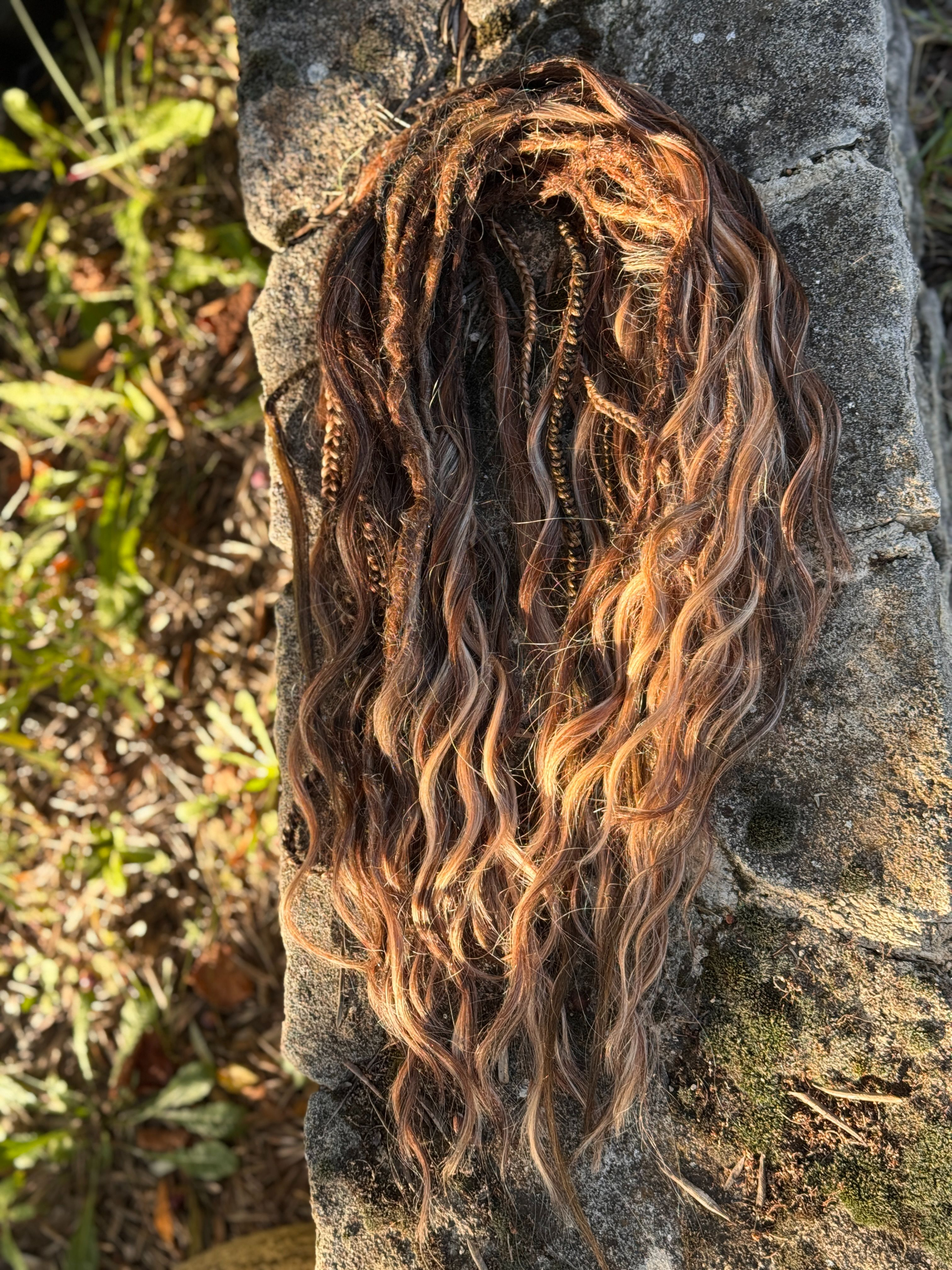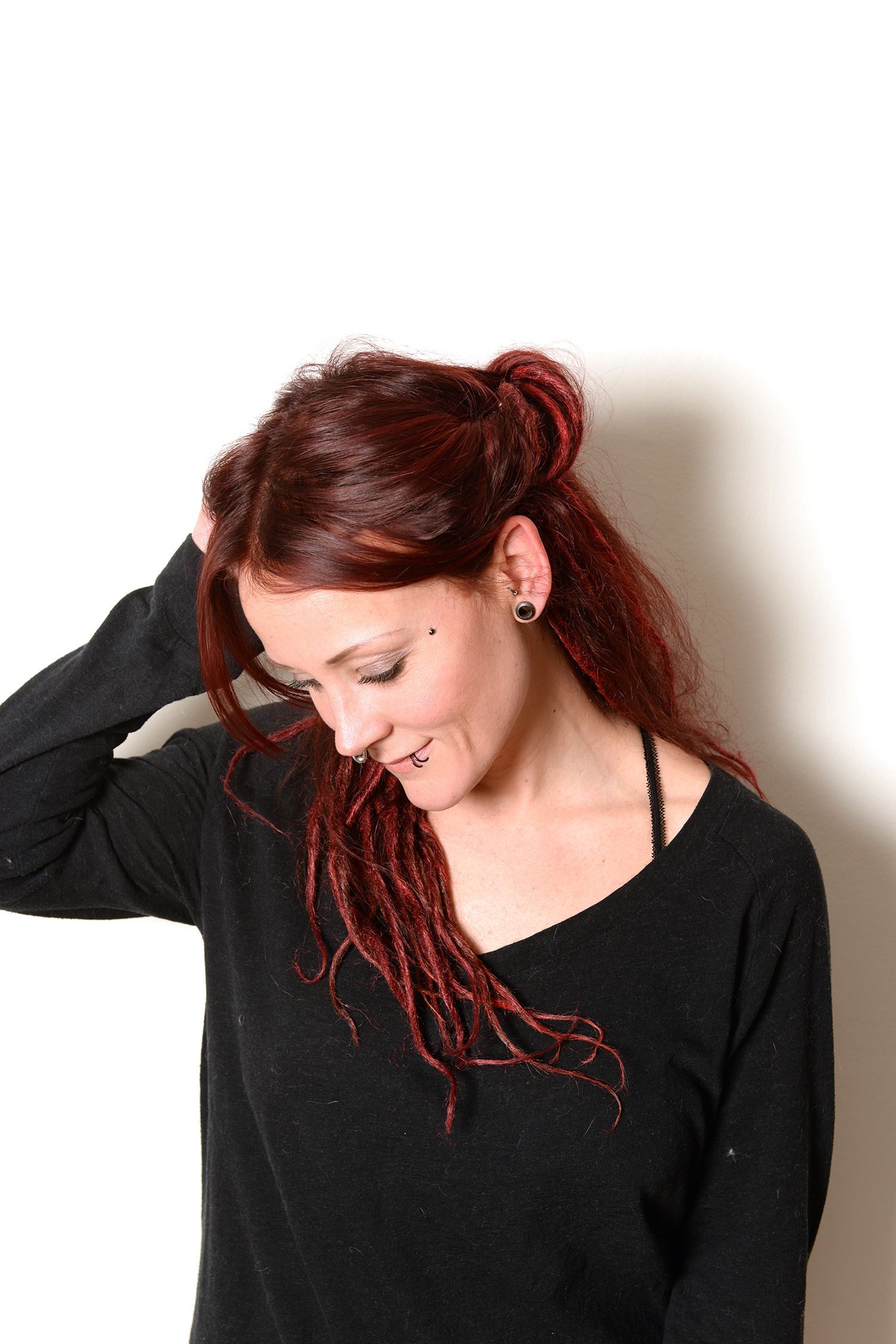 Jag gör bĂ„de pre made dreadlocks som single ended dreads och double ended dreadlocks som man kan flĂ€ta in med olika metoder, du kan vĂ€lja, vilken typ av textur dreadsen ska ha och vilka fĂ€rger och hur du vill att slutet ska vara pĂ„ dreadsen som text dreadlocks med lösa toppar som Ă€ven kallas för Mermaid dreadlocks.Â