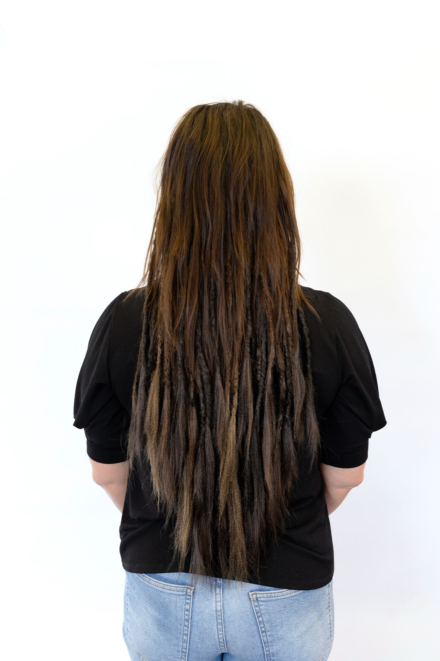 NÀr det gÀller insÀttning av bÄde double ended och single ended dreadlocks sÄ erbjuder jag flera olika flÀt metoder för att flÀta in dina synthet dreadlocks, vilken metod som anvÀnds beror pÄ vilken typ av hÄr som du har och jag anpassar metoderna sÄ att det blir sÄ snyggt som möjligt till ditt hÄr.